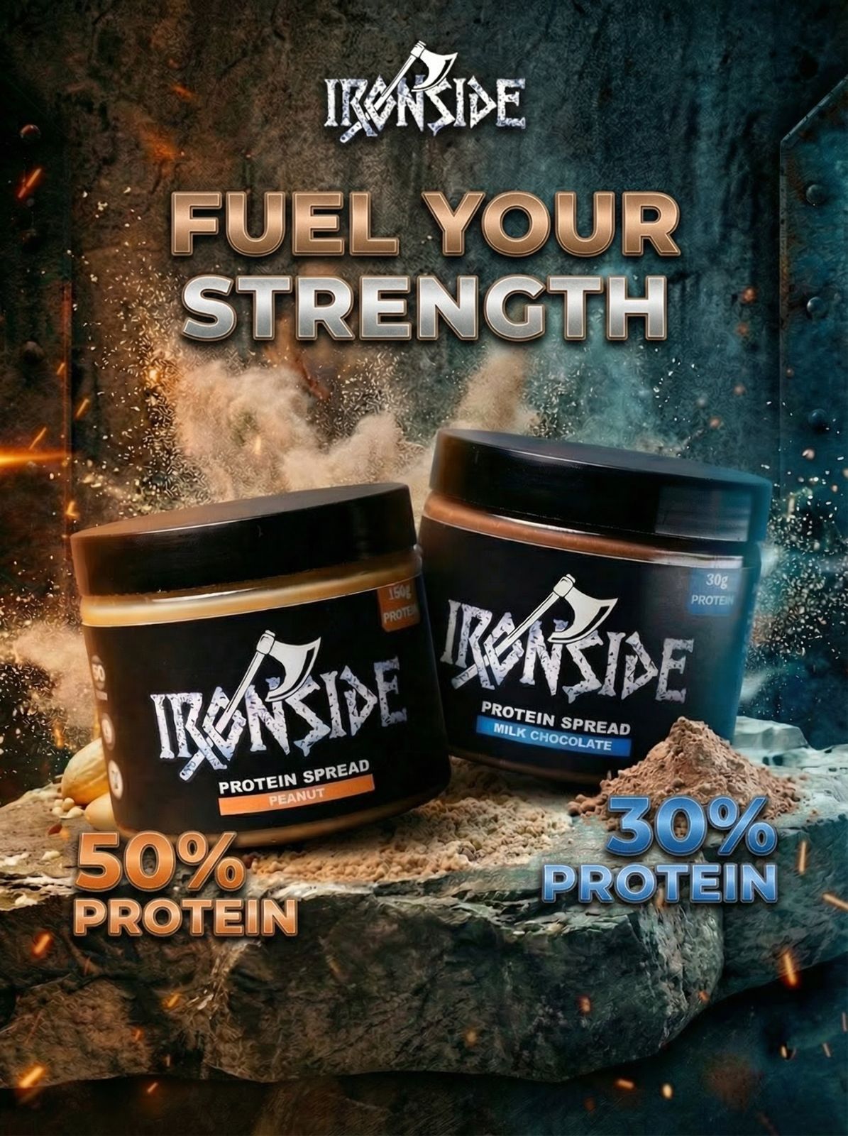IRONSIDE's High-Protein Peanut Butter is made from fresh roasted peanuts and boosted with whey protein isolate for double the protein of regular peanut butter. Each serving (2 spoons) gives you 15g of protein, plus essential fats and clean carbs to keep you fueled and satisfied.